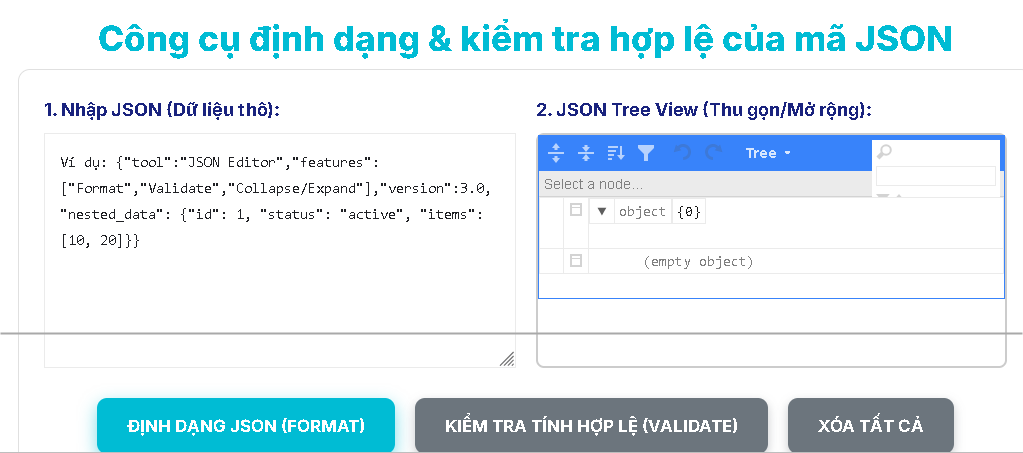 Công cụ định dạng & kiểm tra hợp lệ của mã JSON